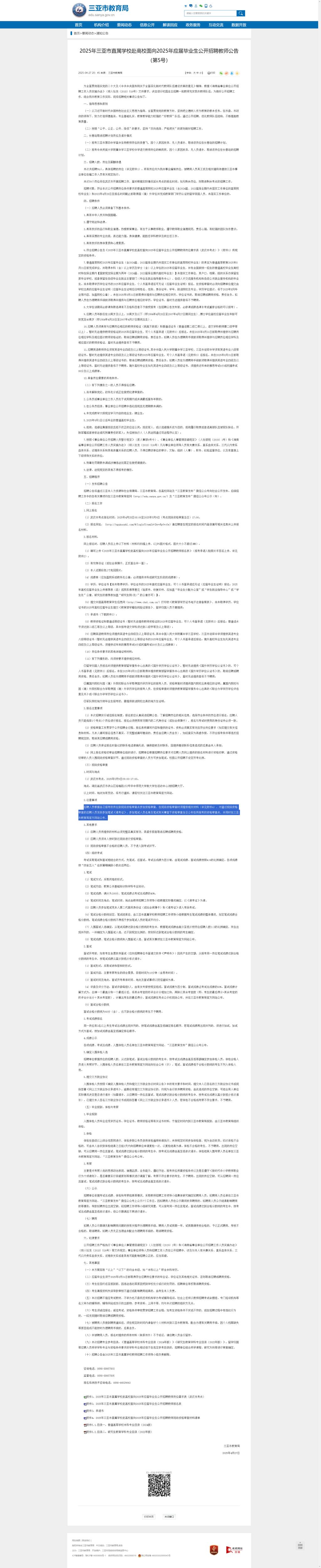 2025年三亚市直属学校赴高校面向2025年应届毕业生公开招聘教师公告(第5号)