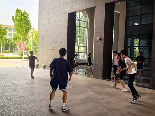 活动中,参与者们被均匀地分成了若干小组。每个小组成员都显得精神焕发,满怀期待。他们身着轻便的运动装,脸上洋溢着兴奋与期待的笑容。随着比赛开始的哨声响起,同学们迅速进入状态:有的紧握沙包,目光如炬,专注而坚定地瞄准目标;有的则灵活地奔跑和跳跃,巧妙地躲避着飞来的沙包。各小组之间展开了激烈的角逐,每一次沙包的命中都伴随着热烈的欢呼,每一次成功的躲避都引起一片赞叹。这都是学子们青春活力的展现,也是对即将结束的学生时代的致敬。阳光洒满腾飞广场,青春与希望的气息在空气中弥漫,预示着毕业生们即将迎来的崭新篇章。
