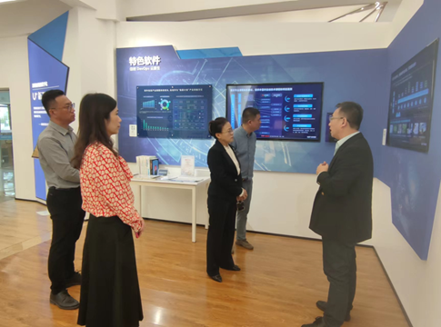我校一行首先参观了青软集团产教融合展厅。青软集团董事长刘全详细介绍了青软集团在数字化软硬件平台、产教融合服务、人力资源服务等领域的情况。
