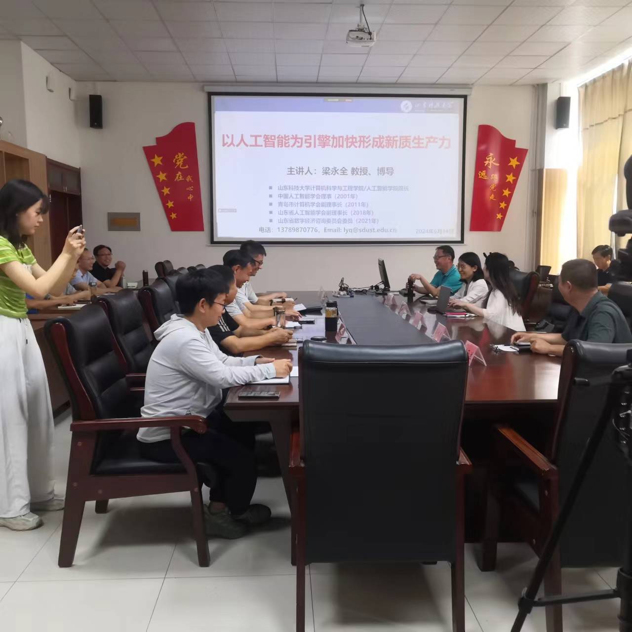 06月14日下午,啊轻点内射在线视频在明理楼0326会议室举办了教学研讨会议,会议邀请了山东科技大学计算机科学与工程学院院长、博士生导师梁永全教授,青软创新科技集团产业学院院长徐美姣。梁教授的报告题目为《以人工智能为引擎加快形成新质生产力》,啊轻点内射在线视频班子成员、师生代表及校企合作企业驻校教师参加了会议。