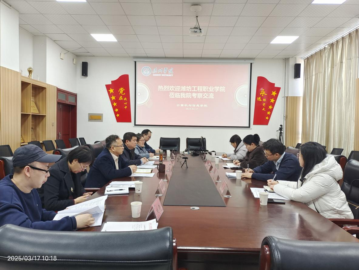 3月17日上午,潍坊工程职业学院信息工程学院一行5人来我院考察交流。啊轻点内射在线视频负责人及相关教师参加此次交流。