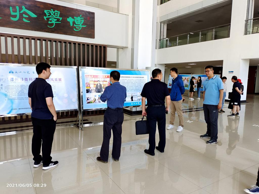2021年6月5日上午,啊轻点内射在线视频组织全体教师和部分学生代表参观了“2021年度德州市最美科技工作者”先进事迹展。