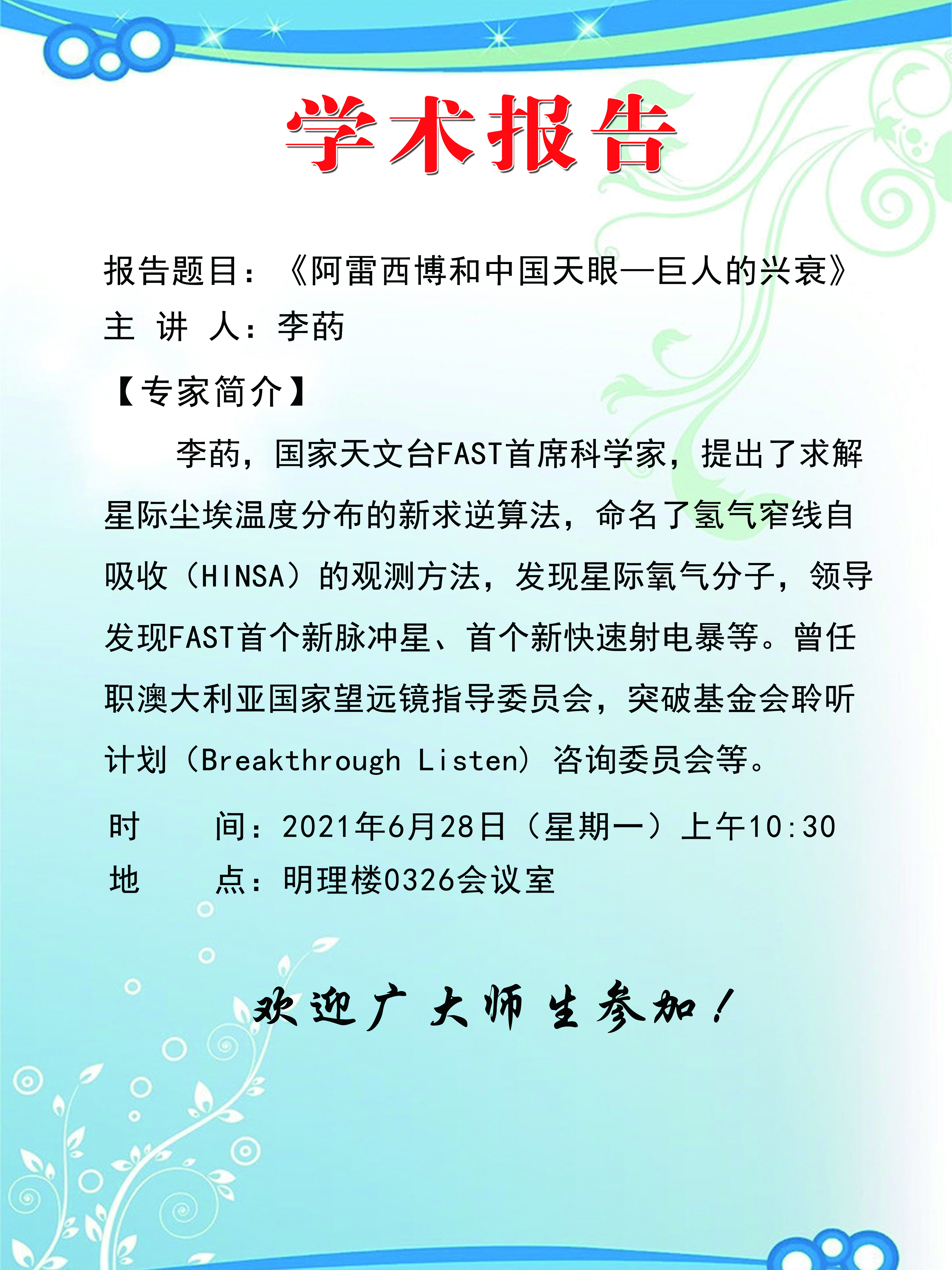 【学术预告】《阿雷西博和中国天眼—巨人的兴衰》