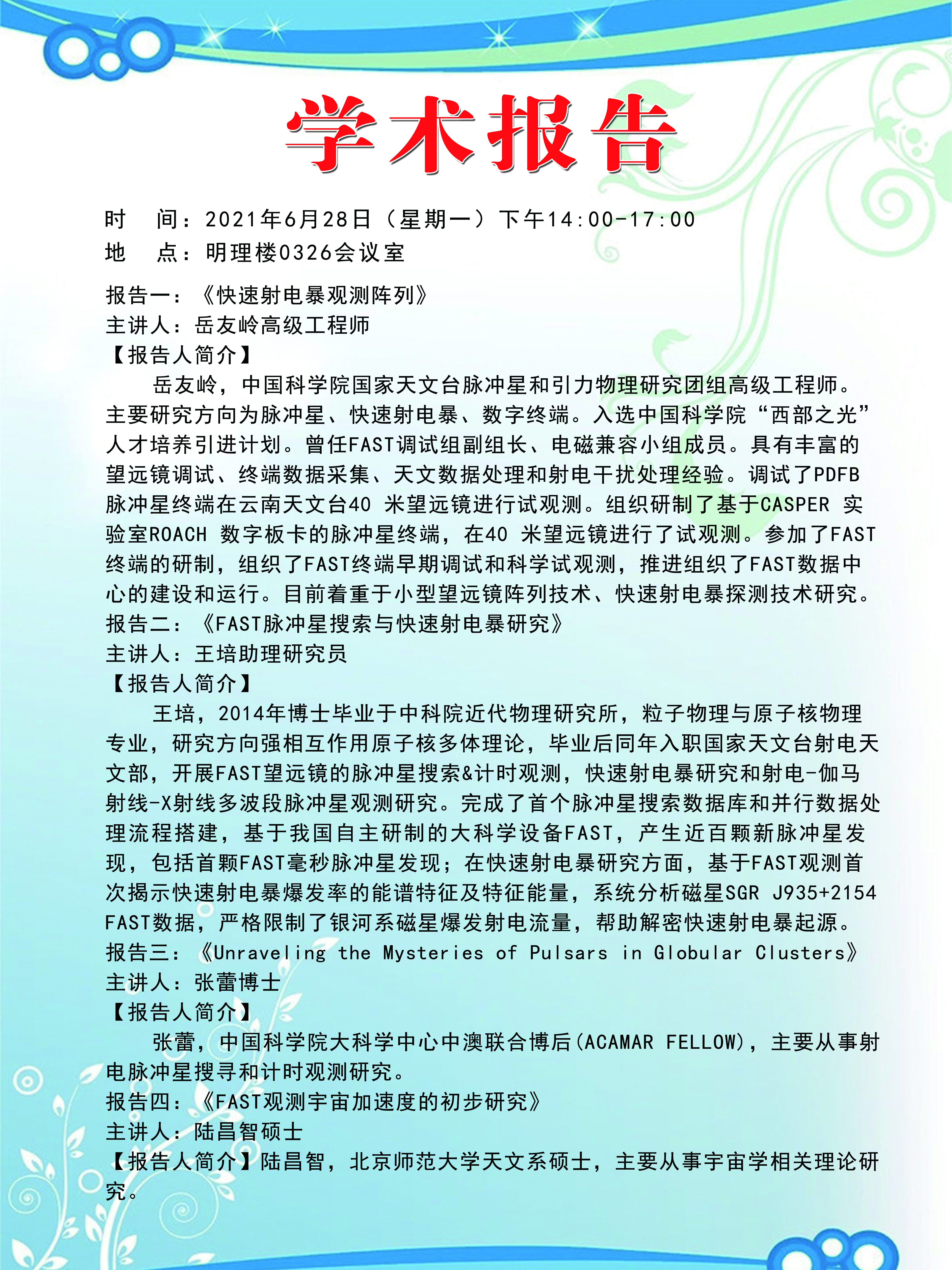 【学术预告】FAST天文大数据处理与研究系列报告
