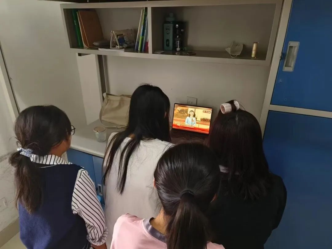 学院学生在宿舍、实验室收看党的二十大开幕会。