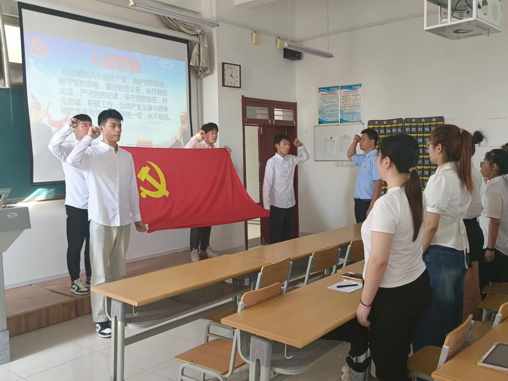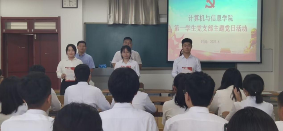 活动中,毕业生党员面向党旗重温入党誓词。学院领导勉励毕业生党员要传承红色基因,赓续精神血脉,牢记初心使命,砥砺奋进前行。2023届毕业生党员代表进行了发言,表达了对母校的感激之情,表示将永葆一名共产党员的先进性,不断加强政治学习,提升自身修养,提高动手能力,投身于全面建设社会主义现代化国家的火热实践中。