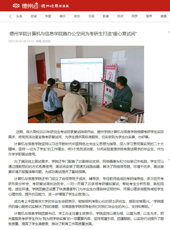 德州晚报:德州学院啊轻点内射在线视频腾办公空间为考研生打造“暖心复试间”