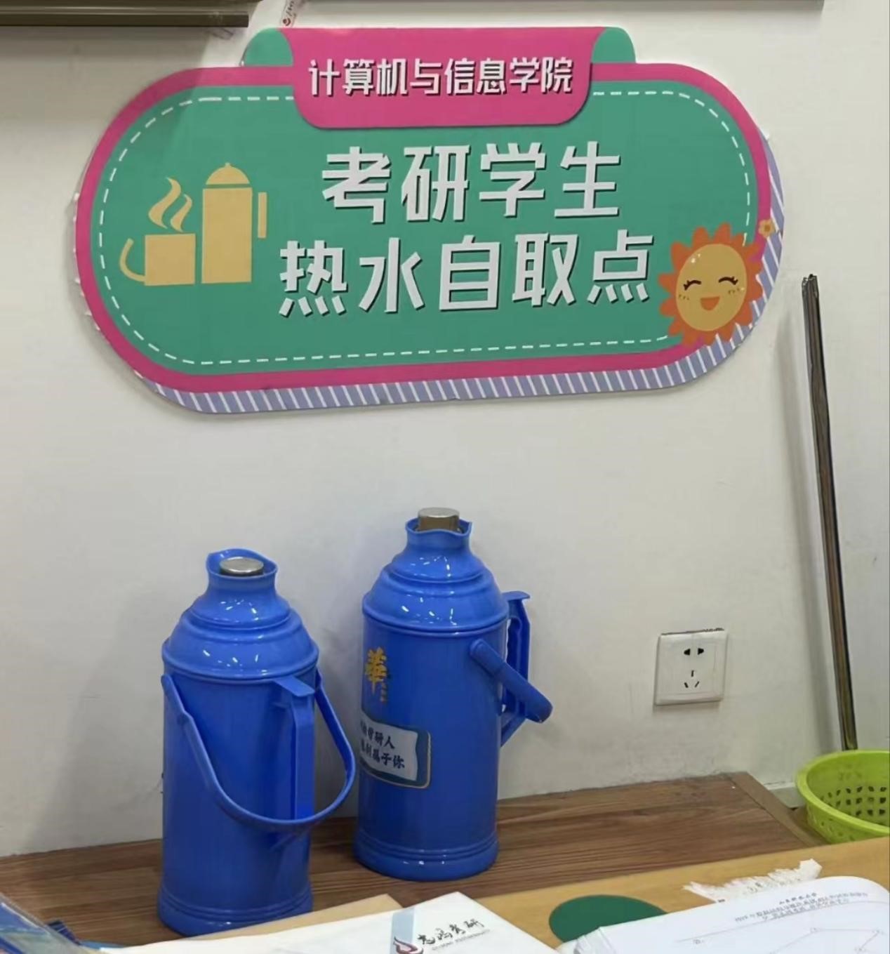 为了让考研学子在紧张的备考中感受到学院关怀,学院在每个考研自习室设置热水自取点,组织志愿者们每天定时为考研学生接好热水,送到自习室。一壶壶热气腾腾的开水,不仅驱散了冬日的严寒,也温暖了每一位学子的心。在高强度的学习压力下,同学们很容易忽略自身的健康。志愿者们的贴心服务,不仅为他们节省了时间,更时刻提醒着他们在努力学习的同时,也要注意身体,保持良好的状态。许多考研学生对志愿者的付出表达了由衷的感谢,他们表示,这一杯杯热水不仅暖身、更暖心,让他们在疲惫时能感受到学院大家庭的关爱与支持,从而更有动力坚持下去。