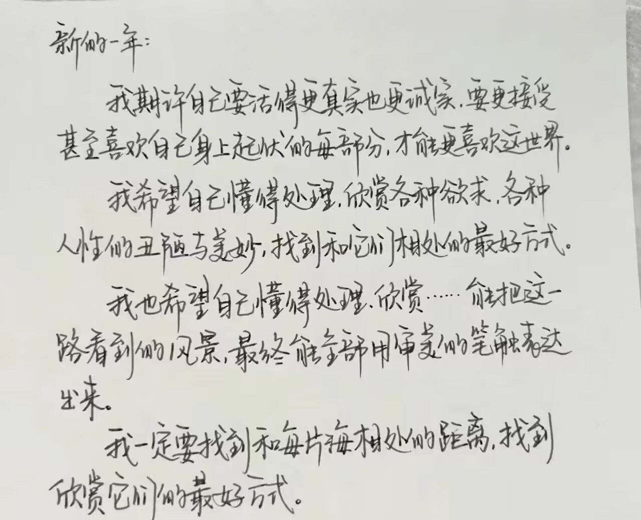 活动中,学生们回望过去,展望未来,用文字勾勒出内心的海洋和山峦,表达了对未来的向往和憧憬。有的同学记录下了对学业的期待,表达了对新一年学业的自信与努力,希望在专业知识上有更大的突破与进步;有的同学分享了对生活方面的期盼,期待着更丰富多彩的社交生活,希望能结交更多志同道合的朋友;有的同学表达了对个人能力提升的期待,期望在新的一年里能够不断突破自我,提升技能,拓展视野。这些文字不仅是对未来的期许,更是同学们对自己成长与进步的真诚渴望,每一句话都承载着他们对新一年生活的美好憧憬,也是对自己不断进步的坚定信念。