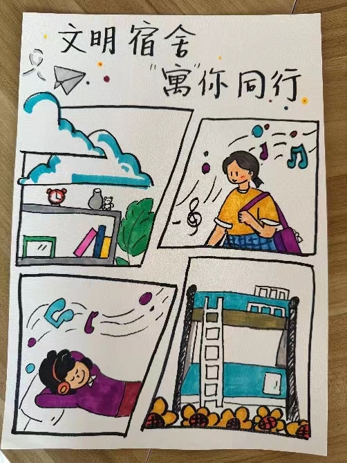 活动中,学生们进行了趣事分享,他们分享了宿舍生活的温馨故事,讲述了室友间相互帮助,共同成长的经历,还有的学生分享了宿舍集体旅行、庆祝生日等欢乐时光,展现了宿舍生活的多彩面貌。随后,学生们以宿舍为单位,共同协作,用手中的笔绘制出一张张充满个性的宿舍名片,每一张都是对宿舍文化的独到理解和创意表达。名片制作完成后,学生们将绘制的名片进行了展示,各寝室学生相互欣赏与交流。