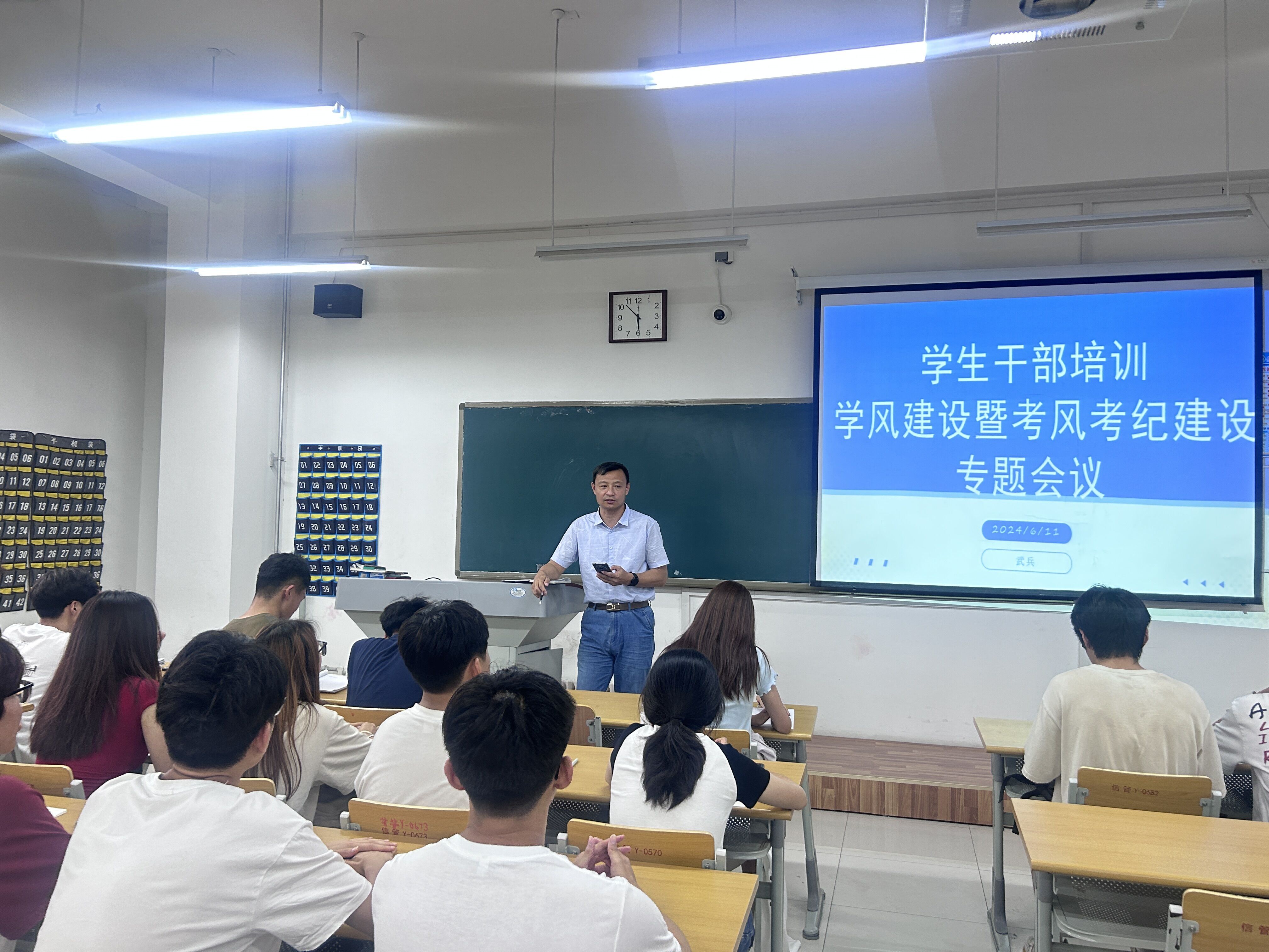 为进一步加强学风建设,提升学生干部的工作能力,6月11日,啊轻点内射在线视频在明理楼322开展以“学风建设暨考风考纪建设”为主题的学生干部培训专题会议,本次会议由我院党委副书记武兵主讲。