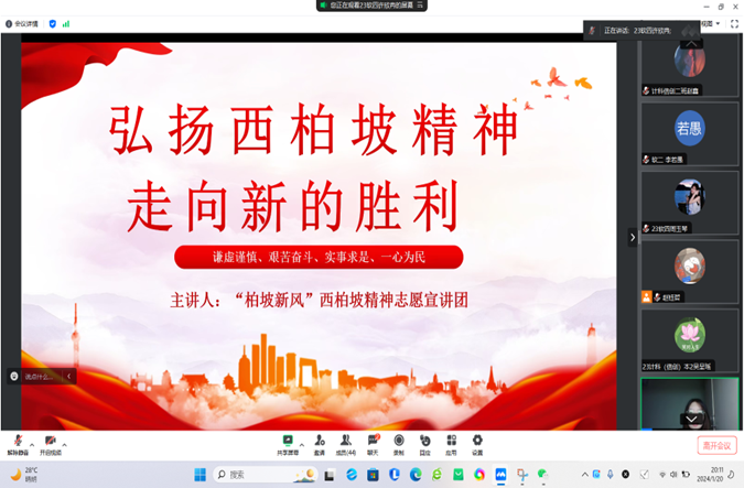 活动中,学生发表了精彩的开场致辞,全面而深入地介绍了活动的背景、目的和重要意义。在展示环节,负责讲解的同学们更是做了精心的准备。他们通过精心剪辑的视频、生动逼真的图片、详实准确的文字等多元化的形式,为大家全方位地呈现了西柏坡的辉煌历史。在解读西柏坡精神时,他们条理清晰,从西柏坡的特殊历史背景介绍,到对西柏坡精神内涵的深度剖析,每一个环节都丝丝入扣,让同学们对西柏坡精神有了更加深刻和全面的理解。活动结束后,学生们还进行了充分的线上交流,一同探讨了关于西柏坡相关内容。