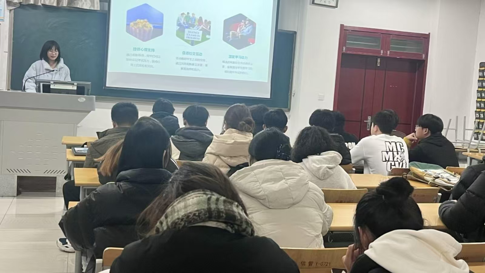 活动现场,气氛热烈非凡。同学们陆续走进活动场所,坐在舒适的椅子上,空气中弥漫着香甜爆米花的气息,瞬间抚平同学们紧绷的神经。此次精心挑选的影片类型丰富,励志剧情唤醒拼搏斗志,治愈故事温暖疲惫心灵,奇幻冒险则带着大家冲破压力“枷锁”,畅游别样天地。