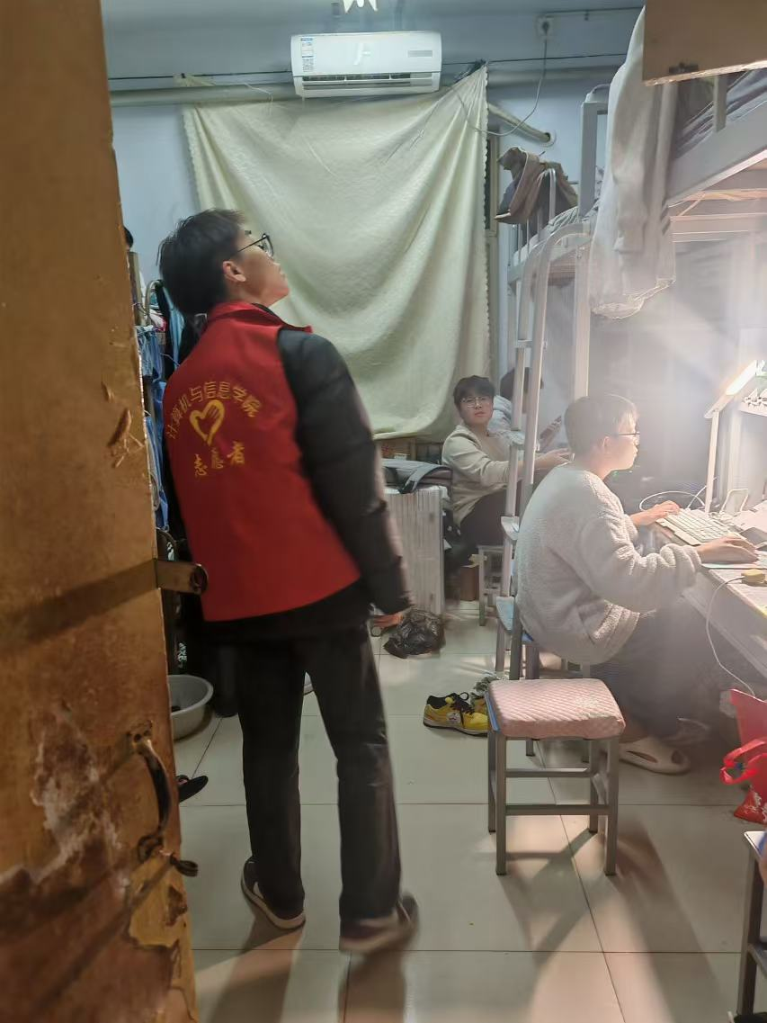 在进行宿舍安全检查的过程中,志愿者鼓励同学们注意日常安全,提高安全意识,以负责任的态度对待宿舍生活,保障自己安全。细致的检查与温馨的提示,让同学们深切感受到了来自志愿者的关怀与温暖。