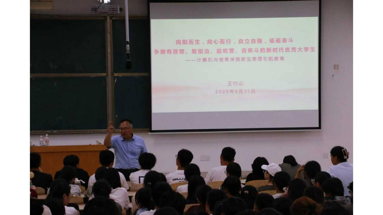 课堂上,王付山书记围绕“如何面对人生” 展开讲解。他指出,服务人民、奉献社会是高尚的人生追求,确立这一追求有助于把握人生奋斗目标、以正确态度生活并实现人生价值。同时鼓励新生发挥主观能动性,提升实现人生价值的能力。随后,王书记阐释人生态度的内涵,即通过生活实践形成的对人生问题的稳定心理倾向与精神状态,并说明人生观对人生态度的决定性作用。针对大学生,他强调需保持四种态度:人生须认真,要思考生命意义、把握关键机遇;人生当务实,要遵循客观规律、不图虚功;人生要乐观,以积极心态应对挫折;人生要进取,以开拓姿态迎接挑战。课后同学们交流表示,通过课程对大学意义与未来方向有了更清晰地认识,对人生规划有了新的思考。