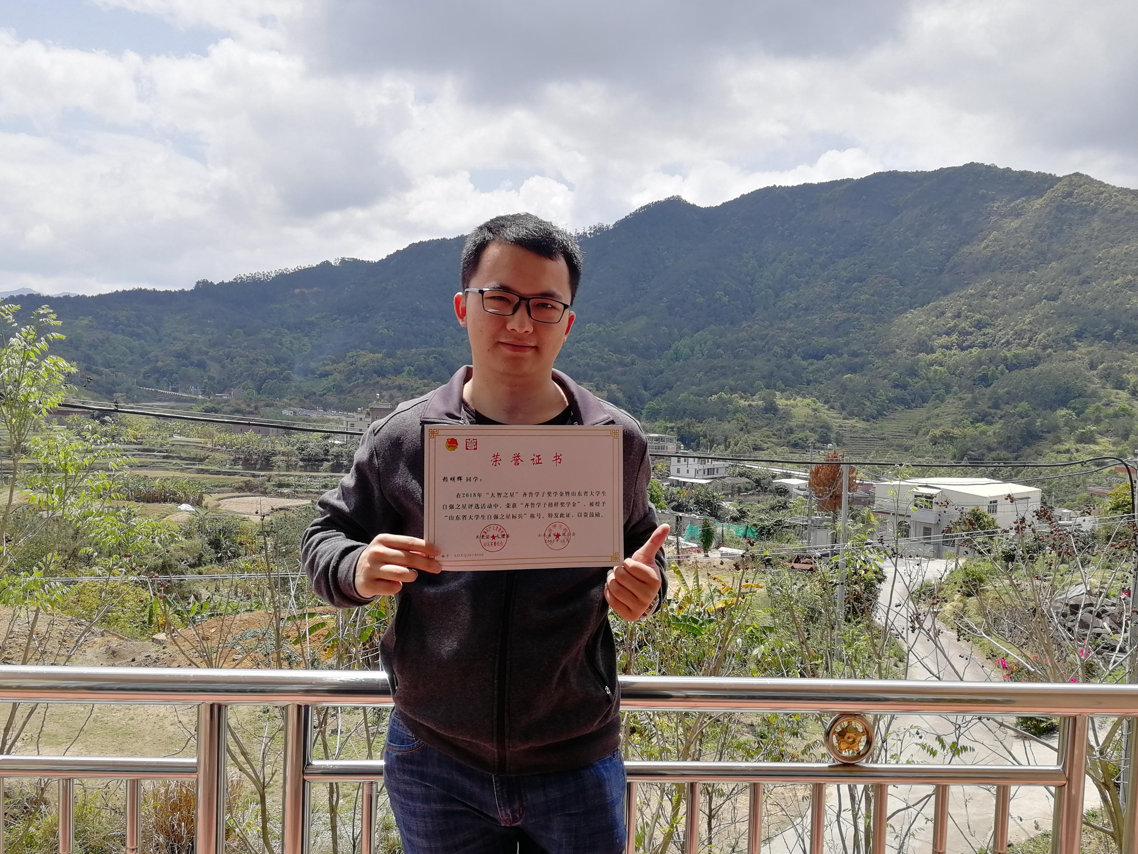 除了积极融入集体,赖明辉更是在课余的时间里,积极参加学校和学院举办的活动。在众多带着探索,疑惑以及同情的目光下,赖明辉开始了大学自信的破冰之旅,最终在各种带着不同情绪的目光注视下,获得校级一等奖的名次。赖明辉开始参与各种国家级比赛,积极报名蓝桥杯大赛、全国大学生计算机应用能力与信息素养大赛、全国数字建模大赛以及中国大学生计算机设计大赛等,曾获得第九届中国大学生计算机设计大赛二等奖、第七届“蓝桥杯”全国软件和信息技术专业人才大赛德州学院选拔赛二等奖等多项奖项。