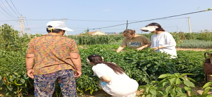 活动中,实践队员们与村民携手共同前往乡村菜园,一边协助农产品栽培及采摘,一边开展调研。他们帮助村民们采摘蔬菜,与村民们询问蔬菜的种植相关知识。同时通过网络了解作物的育苗、栽培、采摘等全过程,并与村民进行交流蔬菜种植建设的情况和给当地村民带来的经济收益以及在乡村振兴战略中发挥的作用。队员们还以“智慧助老,共享智慧生活”为主题,为村民们宣讲数字经济、介绍网络在农业领域的应用技术,帮助种植户深刻认识到了网络的强大影响力。