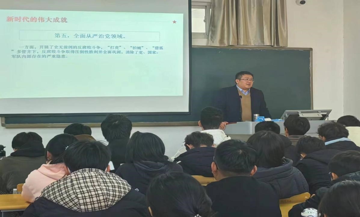 12月8日,德州学院党委委员、组织部部长杨斌来到啊轻点内射在线视频,为联系班级学生上思政课。