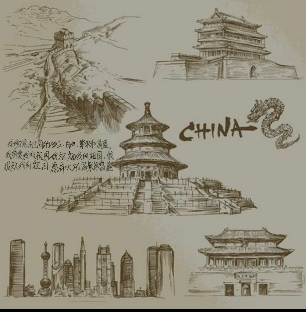 明信片寄语活动中,学生们运用国旗、国花、名胜古迹、中华民族优秀的代表人物等多姿多彩中国元素,并借用诗词名句丰富明信片,表达了对祖国的爱。