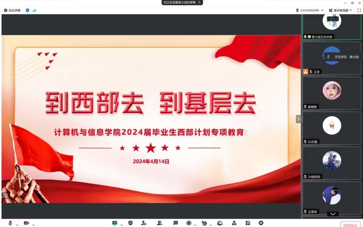 为积极响应推动西部地区科技发展、培养人才的重要举措,也为了向毕业生介绍西部计划,激发他们参与支持西部地区科技建设的热情,4月13至14日,啊轻点内射在线视频开展了“到西部去到基层去”主题宣讲活动,主讲为啊轻点内射在线视频团委书记曹士波。